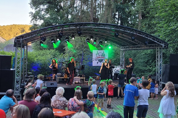 Musical entertainment by Treveromagos, a Celtic folk group from Saarland (Germany), the Luxembourg Pipe Band, Trier-based Irish folk rock band Ghosttown Company and fellow Celtic folk rockers Irish Stew added to the festive and traditional atmosphere. They played Irish ballads "Star of the County Down" and "Foggy Dew" and traditional sea shanty "Drunken Sailor", among other classics, on stage against the backdrop of forest and Bourglinster Castle.