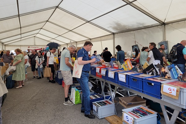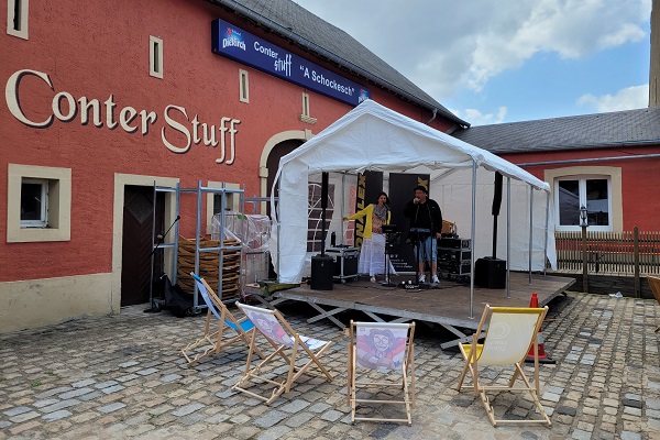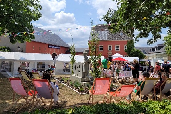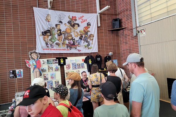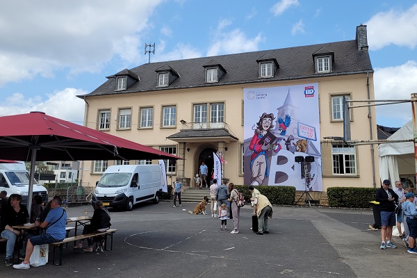 In addition to listening to live music and enjoying some food at one of the many stands scattered around the village, visitors could have their comic books signed by more than 50 comic book writers and illustrators from Luxembourg, the Greater Region and beyond who could be found mainly in the sports hall. A shuttle bus ran regularly between the nearby car park and Sandweiler station and the event itself, which took place mostly outdoors but also in the sports hall and the local church, among other indoor venues.