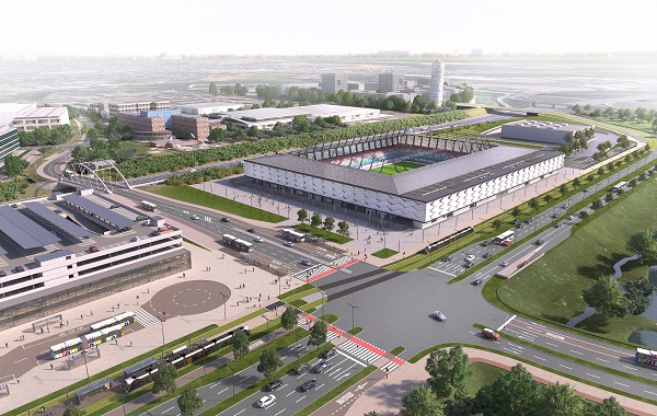 Built on a site between the Cloche d'Or site and Kockelscheuer, the new stadium project involves the construction of a football / rugby stadium comprising a pitch with 9,385 spectator seats, VIP areas, food kiosks, a business club with kitchen, rooms and premises for the press, locker rooms and all its ancillary functions, as well as the development of the surroundings.