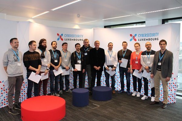 François Bausch, Luxembourg's Deputy PM & Defence Minister, surrounded by participants of the cyber exercise at SECURITYMADEIN.LU;