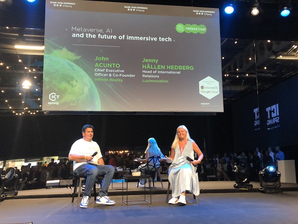 Next on the programme was an interview with John Acunto, Chief Executive Officer and Co-Founder of Infinite Reality, and Jenny Hällen Hedberg, Head of International Relations at Luxinnovation. They discussed “Metaverse, AI and the future of immersive tech”, and introduced Infinite Reality, a company aiming to offer metaverse experiences, giving their clients a digital space for their brand to be able to interact with their audience and potential users in an interactive, remote way. The process is based on the use of Zoom to create an avatar as “an extension” of the person and to give people the possibility to communicate in real time on the internet.
