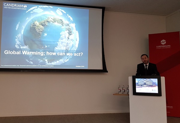 One of the sessions on Wednesday evening, hosted by Candriam and the Luxembourg Stock Exchange (LuxSE), dealt more specifically with global warming and how investors can react to climate change. LuxFLAG Chairwoman Denise Voss opened the session by welcoming the audience to this 10th of fifteen standalone events organised as part of LuxFLAG Sustainable Investment Week. She explained that the initiative aims to put sustainability at the forefront of finance by allowing LuxFLAG’s associate members to present their best practices in sustainable finance, whilst allowing financial professionals to learn from one another and network around this topic.