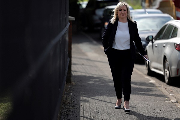 File photo: Vice President of Sinn Féin Michelle O'Neill arrives to vote at a polling station during local elections in Coalisland, Northern Ireland, 18 May 2023;