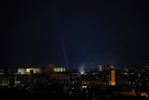 Ukrainian servicemen use searchlights as they look for drones in the sky over the city during a Russian drone strike, amid Russia's attack on Ukraine, in Kyiv, Ukraine, 21 July 2024;