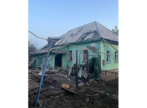 A damaged house following what local authorities called a Ukrainian military strike, in the course of the Russia-Ukraine conflict in the town of Sudzha in the Kursk Region, Russia, in this handout image released 6 August 2024;