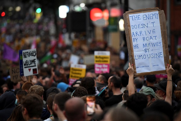 Riots erupted last week when groups of a few hundred mostly men clashed with police and smashed windows of hotels housing asylum-seekers from Africa, Asia and the Middle East, chanting "get them out" and "stop the boats" - a reference to those arriving in Britain in small dinghies without permission.