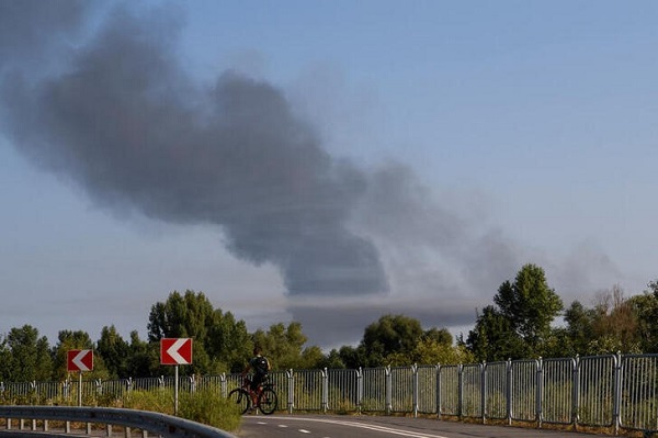 Smoke rises from the city's outskirts during a Russian missile and drone strike, amid Russia's attack on Ukraine, in Kyiv, Ukraine, 26 August 2024;