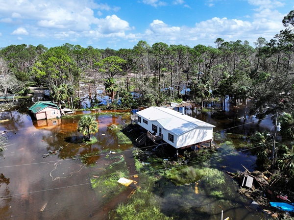 A drone view shows a flooded and damaged area, following Hurricane Helene in Steinhatchee, Florida, US, Friday 27 September 2024;