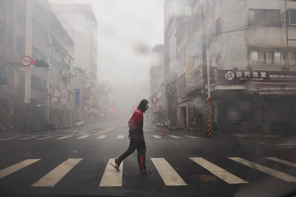 A person crosses the road as Typhoon Krathon approaches, in Kaohsiung, Taiwan, 3 October 2024;