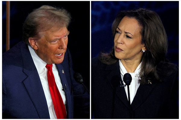 The Republican presidential nominee, former US President Donald Trump, and the Democratic presidential nominee, US Vice President Kamala Harris at a presidential debate in Philadelphia, Pennsylvania, US, on 10 September 2024;