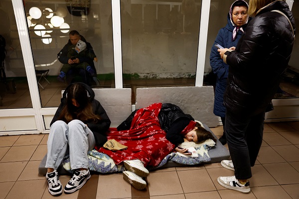 People take shelter during a Russian missile and drone attack, amid Russia's attack on Ukraine, in Kyiv, Ukraine, 13 November 2024;