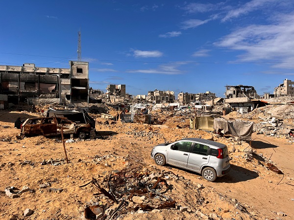 Palestinians walk through a damaged site amid the Israel-Hamas conflict, in Khan Younis, southern Gaza Strip, 27 November 2024;