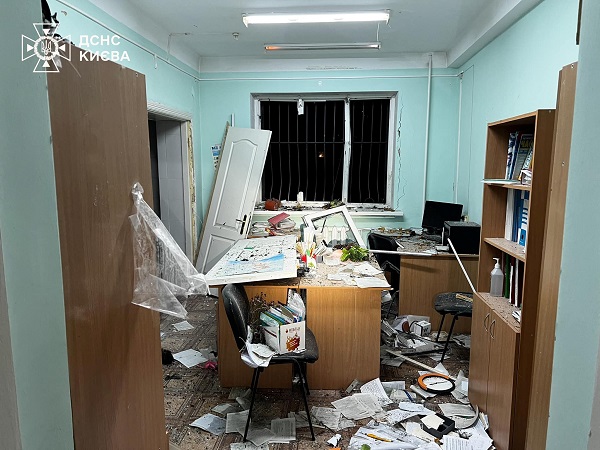 Emergency services, in a post on the Telegram messaging app, showed pictures of rubble strewn about inside and outside a pediatric clinic in Kyiv's Dniprovskyi district on the east bank of the Dnipro River.