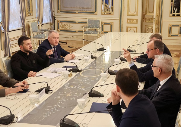 Ukraine's President Volodymyr Zelensky and German opposition leader Friedrich Merz of the Christian Democratic Union party (CDU) meet, amid Russia's attack on Ukraine, in Kyiv, Ukraine, 9 December 2024;