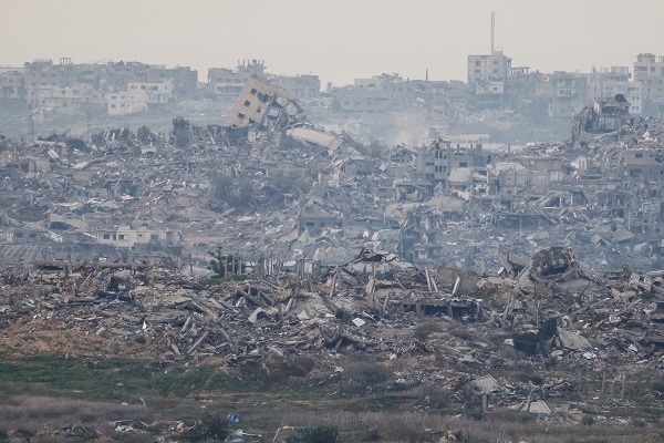 Destroyed buildings are seen in North Gaza, amid the ongoing conflict between Israel and Hamas, as seen from Israel, 14 January 2025;