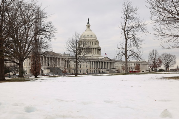 Snow covers the grounds of the US Capitol on the day it was announced US President-elect Donald Trump's inauguration is being moved indoors due to dangerously cold temperatures expected on Monday, in Washington, US;