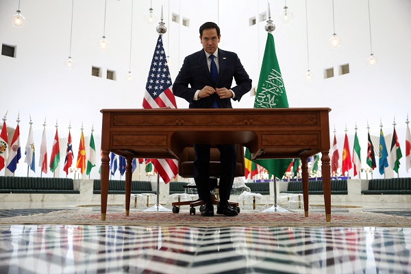 US Secretary of State Marco Rubio looks on, as he visits Riyadh, Saudi Arabia, 17 February 2025;