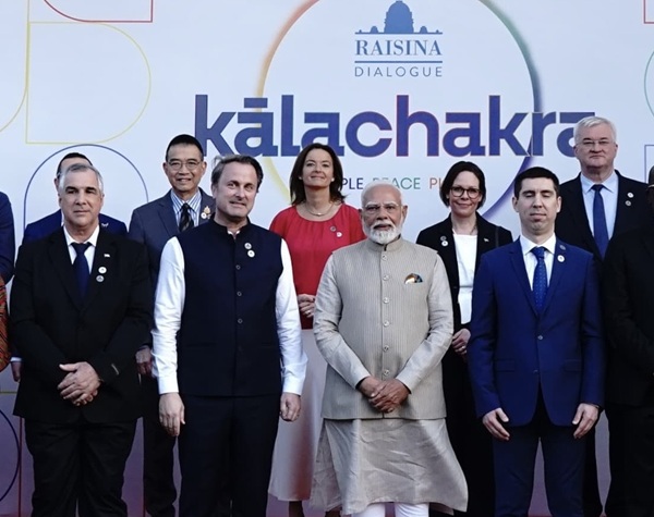 Deputy PM Xavier Bettel and Prime Minister of India, Narendra Modi, in a group photo within the framework of the Raisina Dialogue;