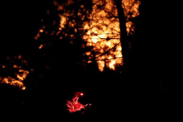A first responder works at the site of a fire in a restaurant caused by a Russian drone strike, amid Russia's attack on Ukraine, in Dnipro, Ukraine, 28 March 2025;