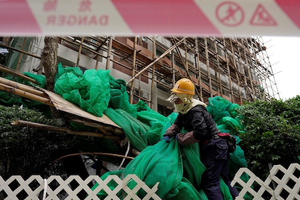 At a housing estate in Sha Tin, around fifteen minutes’ drive from the Wang Fuk complex, workers began dismantling protective netting on Thursday morning.