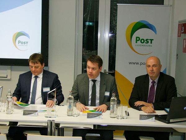 Photo by Geoff Thompson (L-R): Gaston Bohnenberger, Director of POST Technologies; Claude Strasser, CEO of POST Luxembourg; Luc Welter, Director of Marketing & Communication at POST Luxembourg