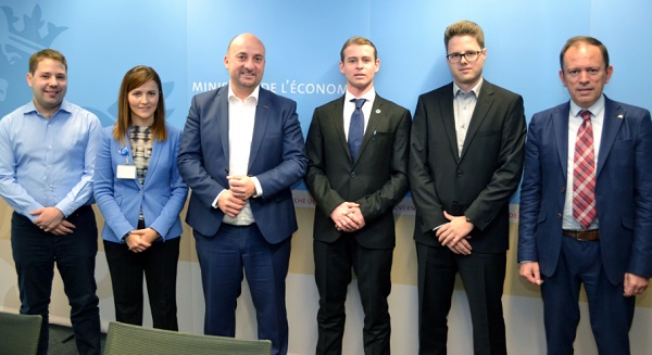 L-R: Ben Gaffinet; Asmira Skrijelj, Ministry of Economy; Étienne Schneider, Deputy PM, Minister of Economy; James Dooley; Denis Loos; Fernando Maura, ESA;