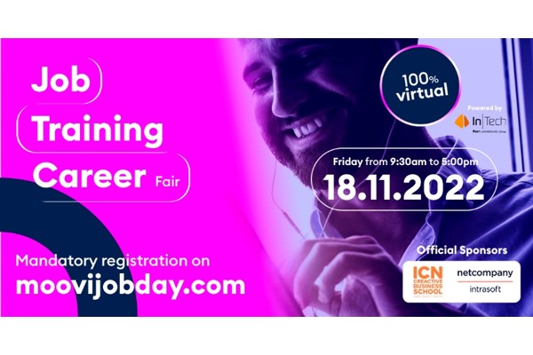 Luxembourg job board and recruitment events organiser, Moovijob, has announced that after the first edition of the year, which took place at Luxexpo The Box on Friday 25 March 2022, the Moovijob career fair will be organised again this Friday 18 November 2022, in a virtual format.