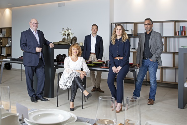 RAK Porcelaine Europe's management team comprises Claude Peiffer, Managing Director, Mariella Di Giambattista, Administrative Director, Letizia Moes-Heinen, International Sales Director, Bertrand Lecante, Marketing Director, and Vincent Matthieu, IT manager.