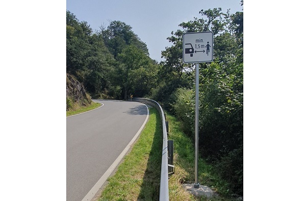 The new road sign has been designed to remind drivers of motor vehicles of the obligation to respect a minimum lateral distance of at least 1.5 metres when overtaking a cyclist.