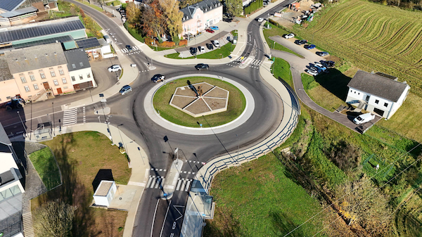 The Diekirch Roads Division of the Roads and Bridges Administration was responsible for designing the project and coordinating the works. Following the roadworks, the Nature and Forest Agency installed a “swallow tower”, and the municipality of Redange/Attert carried out landscaping works and installed an illuminated sculpture at the centre of the roundabout.