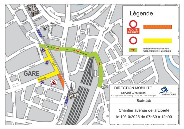 The City of Luxembourg (VdL) has announced upcoming roadworks on the Avenue de la Liberté, between Rue Jean Origer and Place de la Gare.