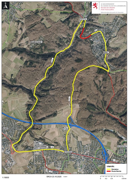 As part of its mission to continuously improve road infrastructure and ensure maximum safety for road users, the National Roads Administration will carry out road and forestry works on the N12 national road between Kopstal and Bridel from Monday 3 to Friday 7 November 2025. This road section will be closed to all traffic in both directions during the works.