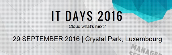 Organised by Farvest, the next edition of the IT Days is to be held on Thursday 29 September 2016 from 08:30 - 18:00 at the Crystal Park, PWC Luxembourg's premises in Luxembourg-Cloche d'Or, on the topic of Cloud what’s next? (How to Build, Explore, Analyse, Secure, Transform my Data through the Cloud?)