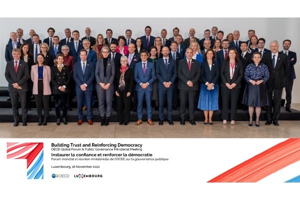 The OECD Ministerial Meeting on Public Governance, with the theme "Building Trust and Strengthening Democracy", was held under the chairmanship of Luxembourg and the vice-chairmanship of Colombia, the United States, France and Lithuania and led to the adoption of the Luxembourg Declaration on Building Confidence and Strengthening Democracy, providing in particular: