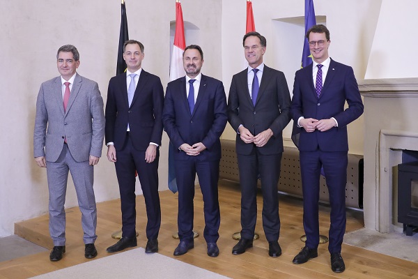 L-R: Jean Rottner, President of Grand Est regional council; Alexander de Croo, Belgian Prime Minister; Xavier Bettel, Luxembourg's Prime Minister; Mark Rutte, Dutch Prime Minister; Hendrik Wüst, Minister-President of North Rhine-Westphalia;
