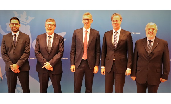 (L-R) Kevin Duarte Fonseca, Alderman of Schieren; Jean-Paul Zeimes, Mayor of Schieren; Léon Gloden, Luxembourg Minister of Home Affairs; Luc Feller, Mayor of Mamer; Edouard Buchette, Alderman of Mamer;
