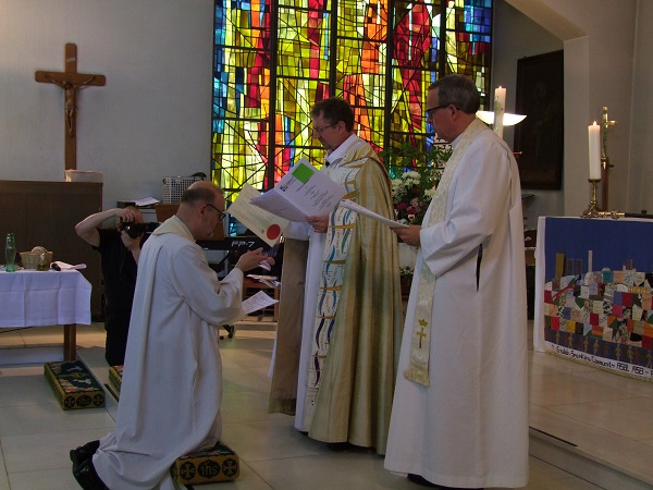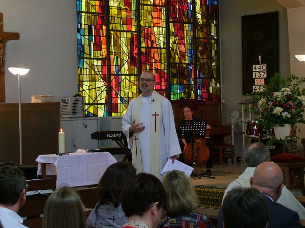 Having been married in the the Anglican Church in Luxembourg at the Konvikt Centre in 1985 to his wife Marie-Louise who came from Bitburg in Germany, the Anglican Church "welcomed back" Rev'd Geoff Read, who was appointed to succeed Rev'd Chris Lyon who retired last year. Rev'd Geoff Read moved to Luxembourg a number of weeks ago and started taking services from mid-March, prior to Saturday's official licencing service.