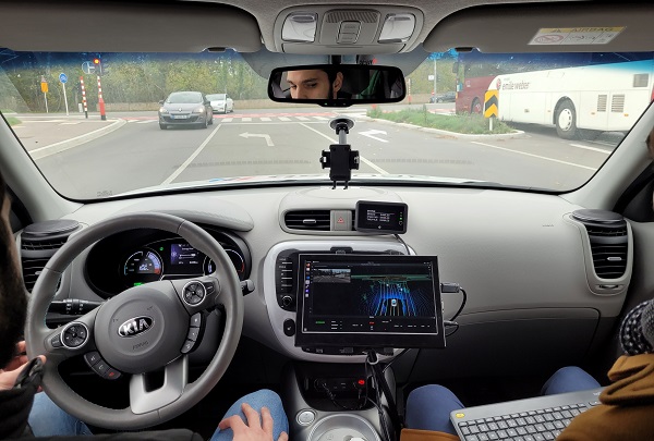 This was the first time an autonomous single-family car drove on the open road in Luxembourg in natural conditions. Journalists from different media outlets had the opportunity to hop in a self-driving KIA Soul EV, accompanied by a safety driver (who sat in front of the steering wheel without actually steering), for a ten-minute ride around the Kirchberg district.
