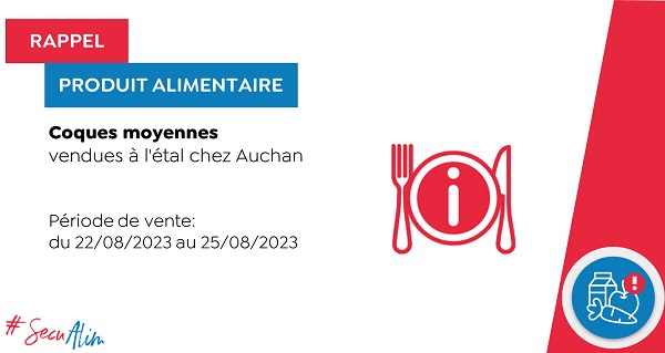 - Mussels ("Coques moyennes") sold at Auchan between 22 and 25 August 2023;