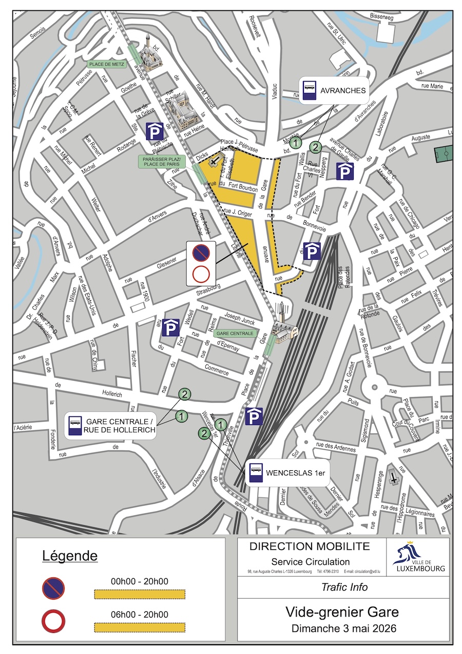 To facilitate the car boot sales, the VdL has announced that Avenue de la Gare and adjacent streets will be closed to traffic and parking on Sunday 3 May.