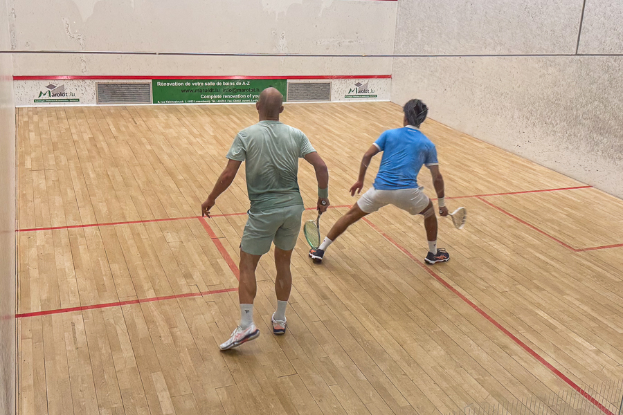 This year’s edition brought together 69 players across several categories, with 15 nationalities represented as local players competed alongside international professionals. The Elite Invitational Event featured four players competing in a round-robin format. Headlining the event was French player Grégoire Marche (world No. 17), alongside fellow Frenchman Toufik Mekhalfi (world No. 57). They faced Luxembourg Squash Technical Director Christopher Votion, a former top-three junior in Belgium, and Luxembourg international Danny Hutchins.