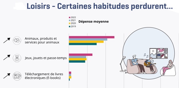 With the lifting of health restrictions, the year 2022 marks a “return to normal” for households. The COVID-19 period nevertheless seems to have left lasting traces and households have not completely resumed consumption habits that prevailed before the start of the health crisis. The recent surge in energy prices and the surge in food prices have forced households to make choices regarding their consumption. Consequently, certain expenditures still remain at a higher level today than in 2019, while others have not returned to their pre-crisis value.