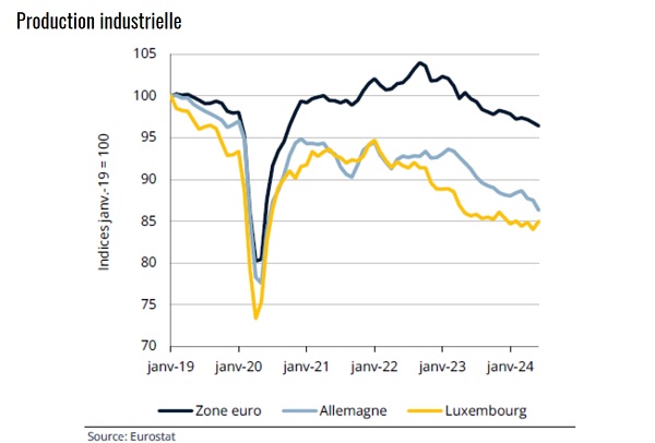 Industrial production in the eurozone continued to decline at the start of summer. This fell by 0.3% over one month in July and showed a decrease of almost 4% over the first seven months of 2024 compared to last year. This negative trend is relatively generalised between the different Member States, with the exception of some in southern Europe such as Spain (+0.1% over the first seven months), Portugal (+0.6%) and Greece (+7.3%). Among the others, Germany (-5.2%) and Austria (-4.0%) stood out as the most affected. Luxembourg showed a less pronounced decline than in the eurozone in general (-2.9%), but this follows an already mediocre 2023, during which production fell by 5.6%, compared to only 2.1% in the eurozone.