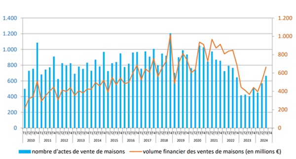 Number of house sales and financial volumes corresponding to these sales (statistics from notarial deeds);