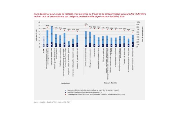 Moreover, the analysis highlighted the need to consider the impacts of presenteeism in strategies aimed at reducing absences from work. Presenteeism is often motivated by the fear of penalties or job loss. Measures aimed at reducing absences, such as increasing the cost of absence for the employee or the risk of being penalised in their career, can therefore encourage harmful presenteeism with multiple consequences. The CSL underlined the necessity to focus efforts on improving working conditions and managing occupational health, paying particular attention to the opinions of employees or their representatives on their quality of life at work. Prevention, non-stigmatisation, improved working conditions, a peaceful work environment, the supportive reintegration of sick people and an effort to understand absences appear to be fundamental to preventing both presenteeism and sick leave.
