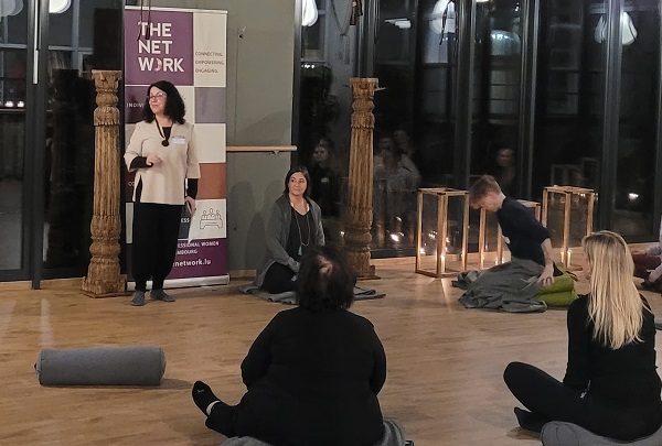 The NETWORK's President Mariana Florea introduced guests (members and non-members alike) to this interactive event, during which attendees grabbed a cushion and participated in various exercises. An avid yoga practitioner herself, Mariana emphasised the importance of posture, breathing and timing.