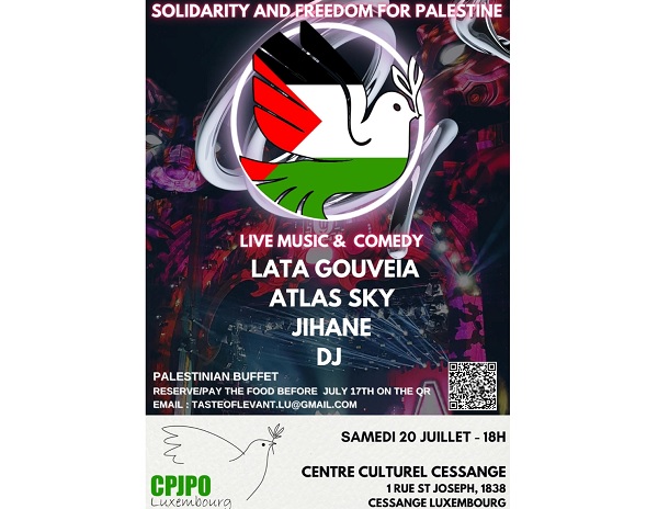 The Comité pour une Paix Juste au Proche-Orient asbl (CPJPO; Committee for Fair Peace in the Middle East) has announced that it is organising a Palestine solidarity celebration at the Cessange cultural centre (1 Rue Saint-Joseph, L-1838) on Saturday 20 July 2024 at 18:00.