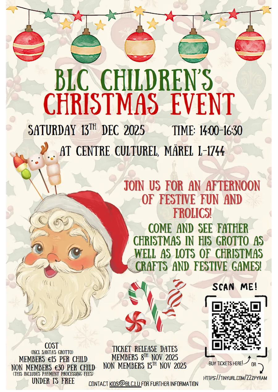 The British Ladies Club (BLC) in Luxembourg have announced that they will host their Children’s Christmas Event on Saturday 13 December 2025, at the Centre Culturel in Luxembourg-Merl.