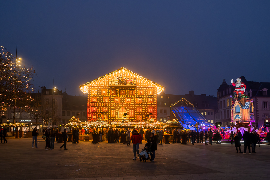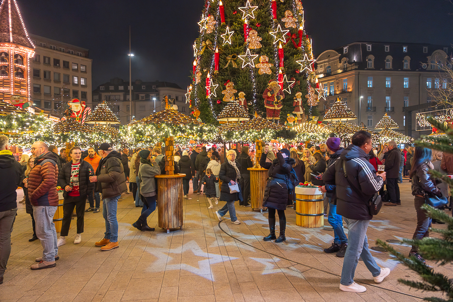 Rounding off the markets in the city centre is the newly established “Sapin Royal” on Place Émile Hamilius. This is a much smaller affair and features six chalets offering hot chocolate, crêpes, waffles, burgers and hot dogs along with a small selection of gifts and decorations. Both alcoholic and non-alcoholic drinks are available. The atmosphere here is less energetic than at the other markets, with more of an emphasis on being a quick stop for food and drink while moving through the city. Its location next to the Hamilius tram and bus terminus makes it an ideal meeting point or the perfect place to end one’s visit to the festivities before making use of public transport.