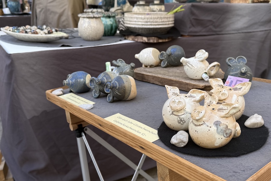 This recognition opened new opportunities, including invitations to create ceramic pieces for international events and commissions for custom-made “Péckvillercher”. Over time, she transitioned away from engineering to focus entirely on ceramics, developing her own workshop format and teaching both children and adults.